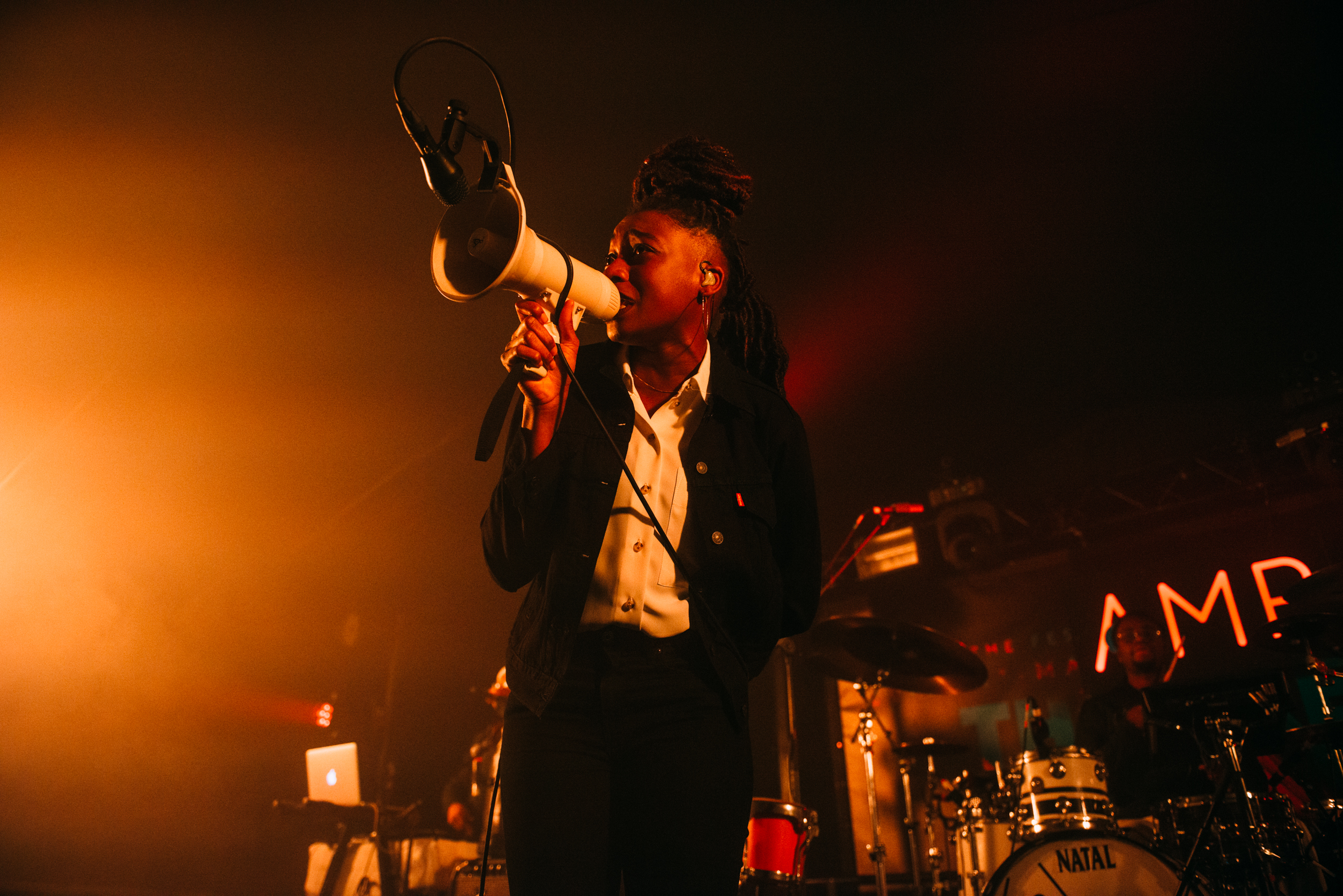 Her rhythmic and lexical control is impressive above raw beats, where opener ‘Boss’ is electrifying, with Simz rapping through a megaphone. The show as a whole is all the better for having a live drummer, giving even more impetus as she hurtles through each buzzing track.