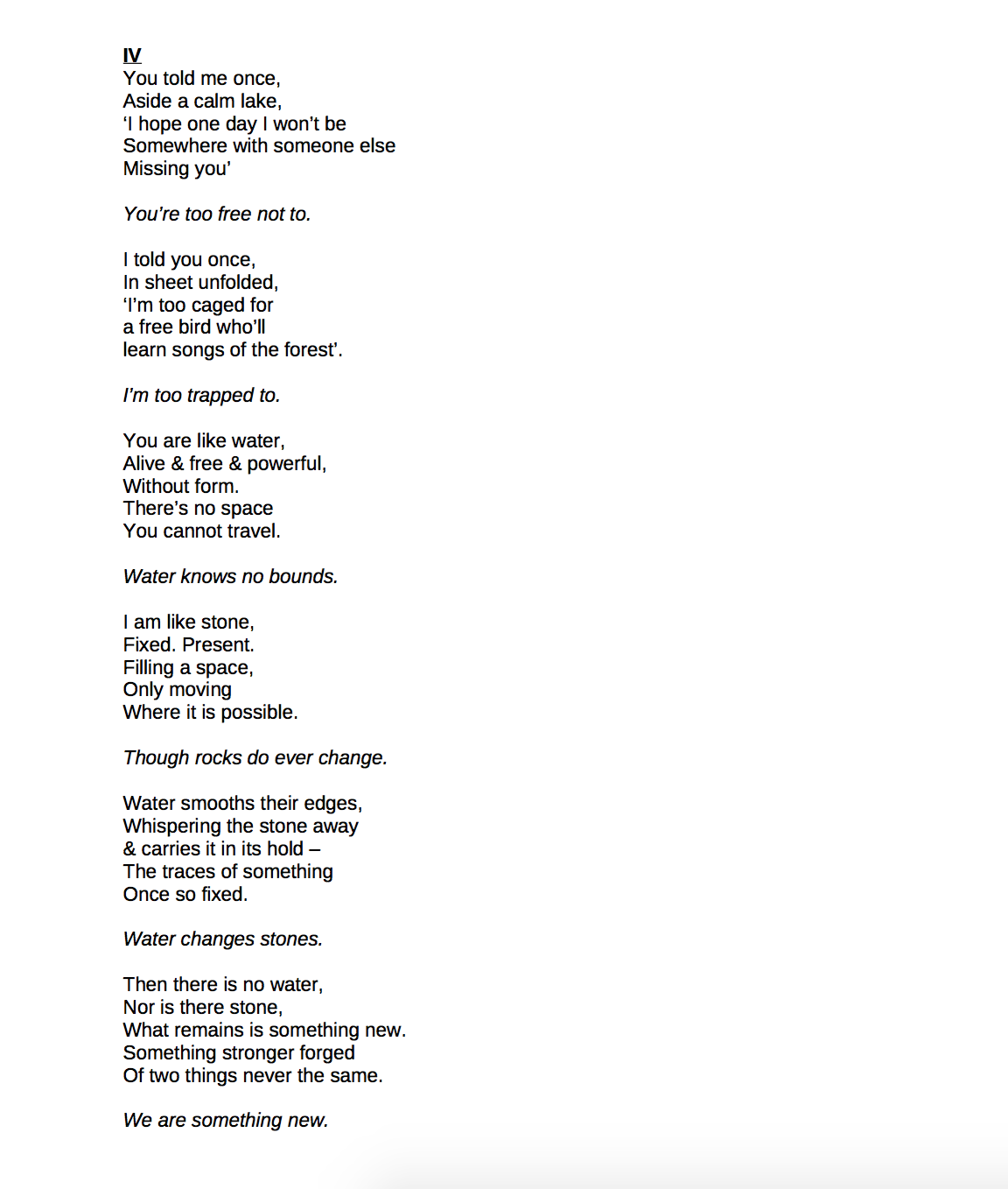 ” I started writing poetry when I was 14, although it has never been something I have shared . It was a way to align thoughts I couldn’t ignore when I couldn’t make sense of them and it gradually just became something I did more often. It was never really a conscious thought to start writing as I had never had any training or encouragement to do it, it just seemed to help.