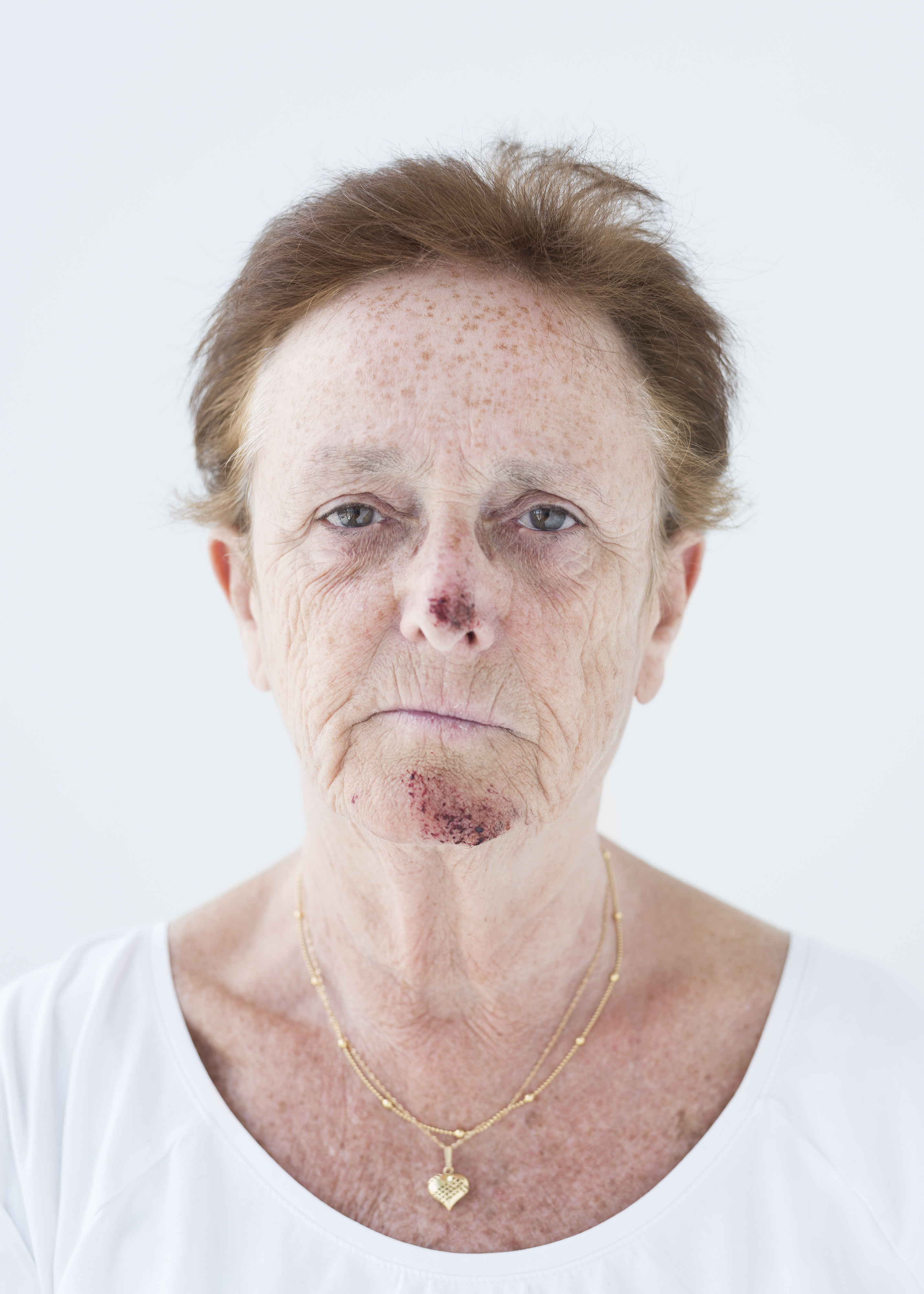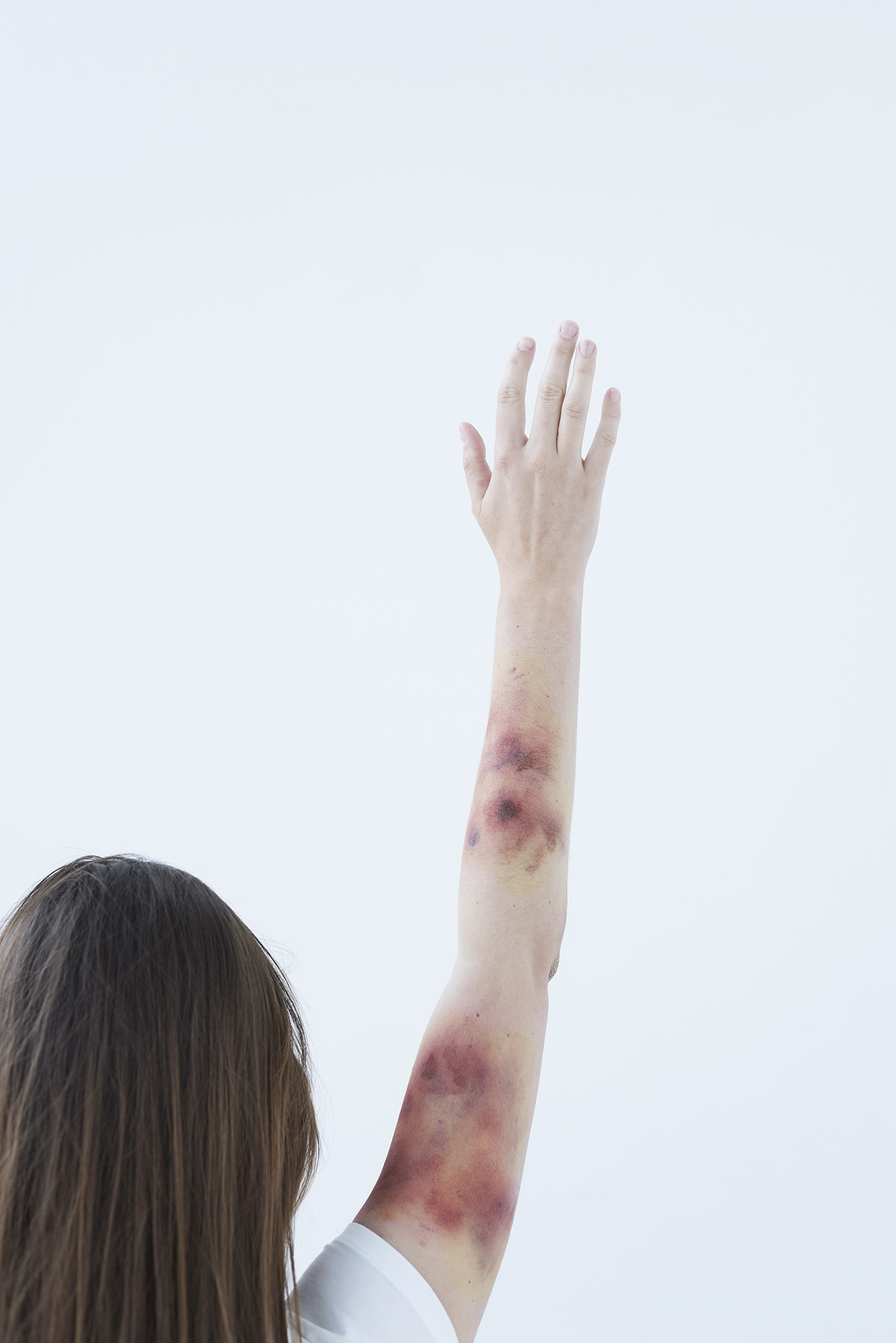 The photos are staged, the bruises and wounds were made by two make-up artists from a theatre. The models are all volunteers at the women’s shelter. It was important to me that the models were aware of what domestic violence means, because I wanted to avoid a theatrical sense in the pictures.
