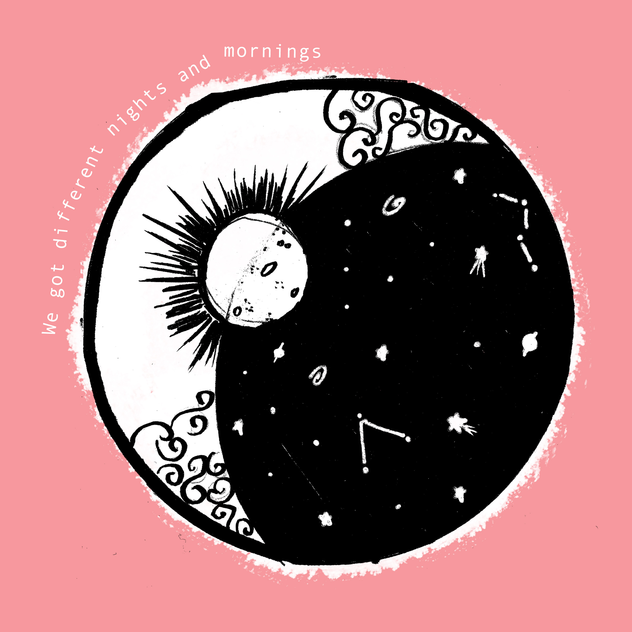 The main theme you’ll find in my artwork are references to the music I listen to. I am inspired by their melodies, lyrics, and imagery which I use as starting points for different illustrations, photographs, and typography. I listen to a mixture of genres and artists, from Old Rock to 2000’s R&B hits and even Kpop! It just depends on what my eyes and ears capture at that current moment, so my inspirations are interpreted relatively different each time.