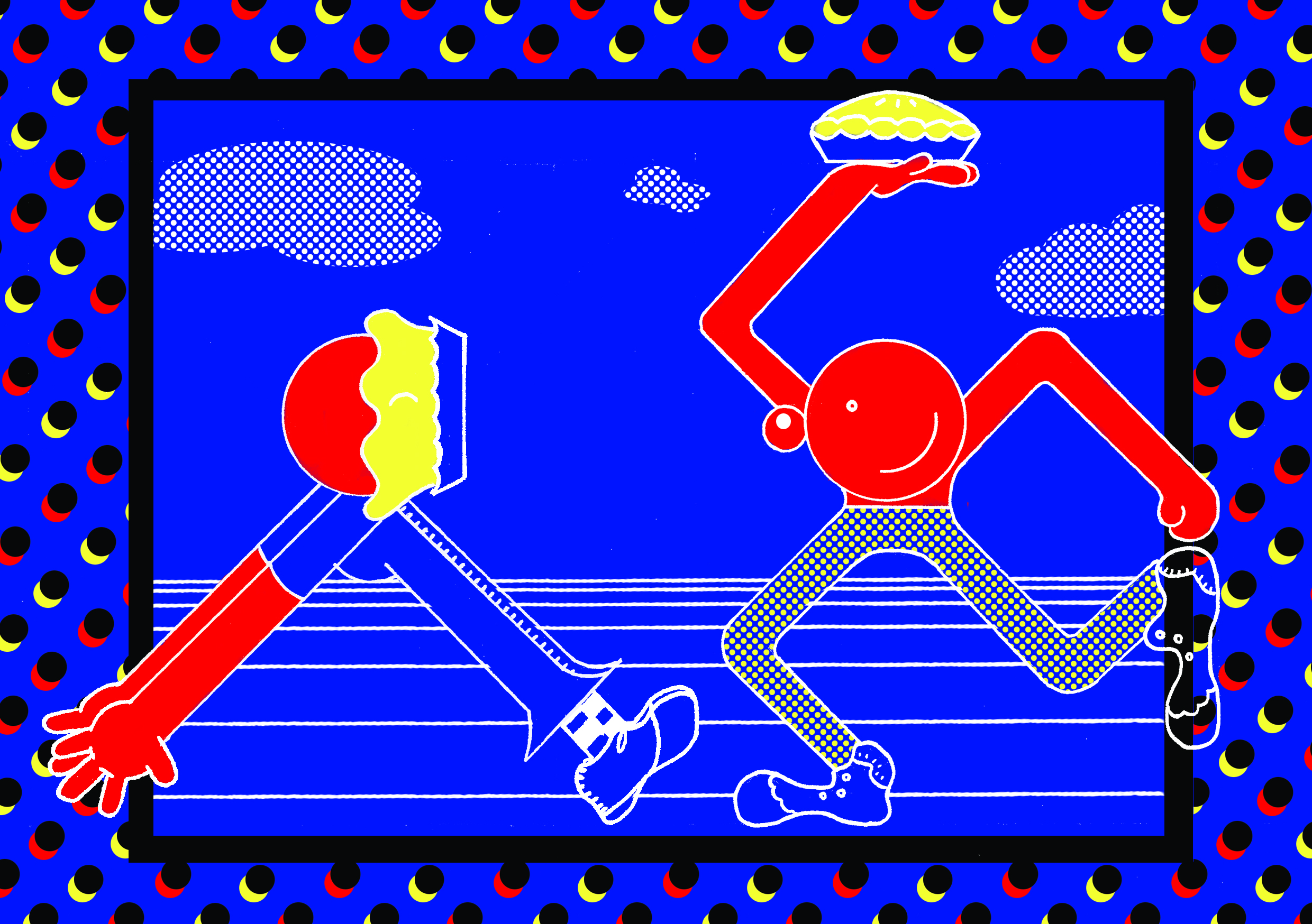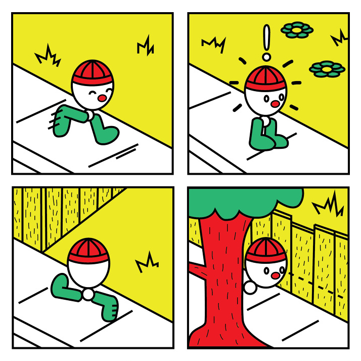 I think just by drawing very cartoony forms, there’s humor in that. I like trying to build people out of circles, or fit them in a square, or drawing the body parts separately and sticking them together to get weird proportions. I think that’s funny. I’ve spent a lot of time being very serious about things and am finally comfortable enough with myself to say, “actually I enjoy these things, just because they are silly or subversive, or innocent.” Also, just taking recognisable everyday things; certain facial expressions or actions, and reducing them to just lines and circles, there’s something funny about recognising that from these very simple prompts.