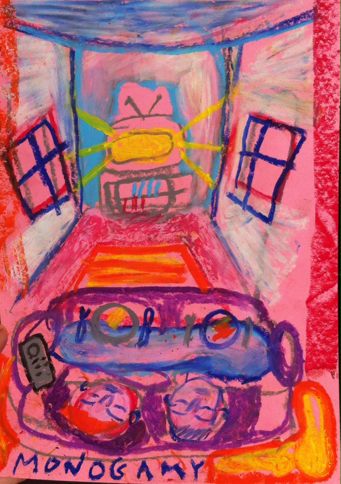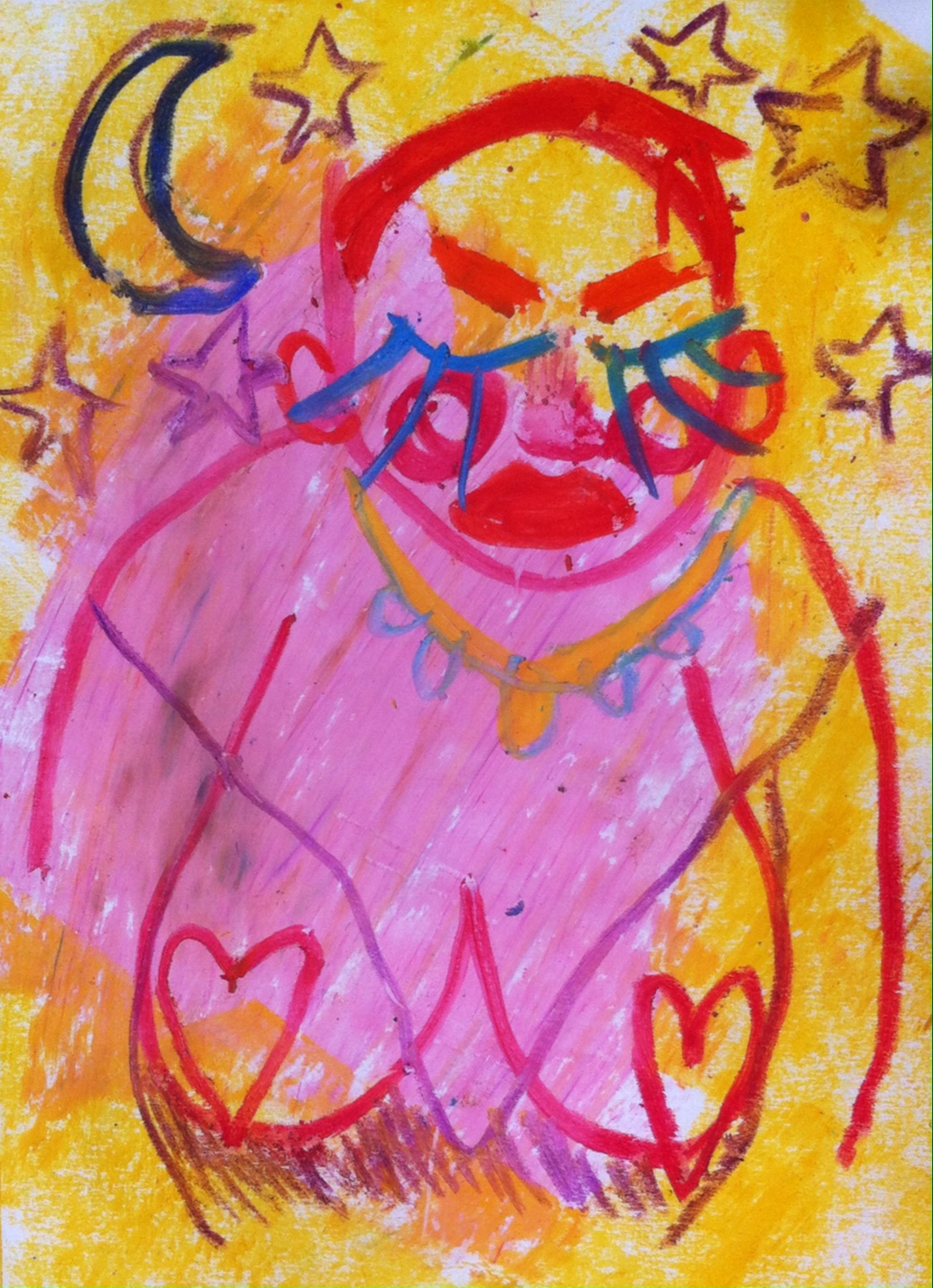 I began trying to paint realistic bodies but have since taken an interest in cartoon-like drawings and textiles. Most of my work is made using readily-available and recycled materials such as cardboard packaging. My self-portraiture process begins with pictures or videos of myself, which I then try to recreate. I rely heavily on filming myself for my performance too. It enables me to look at myself in different ways; I’ve realised that I don’t exactly paint or draw myself, but rather use my body as a framework for drawing other characters or versions of myself.