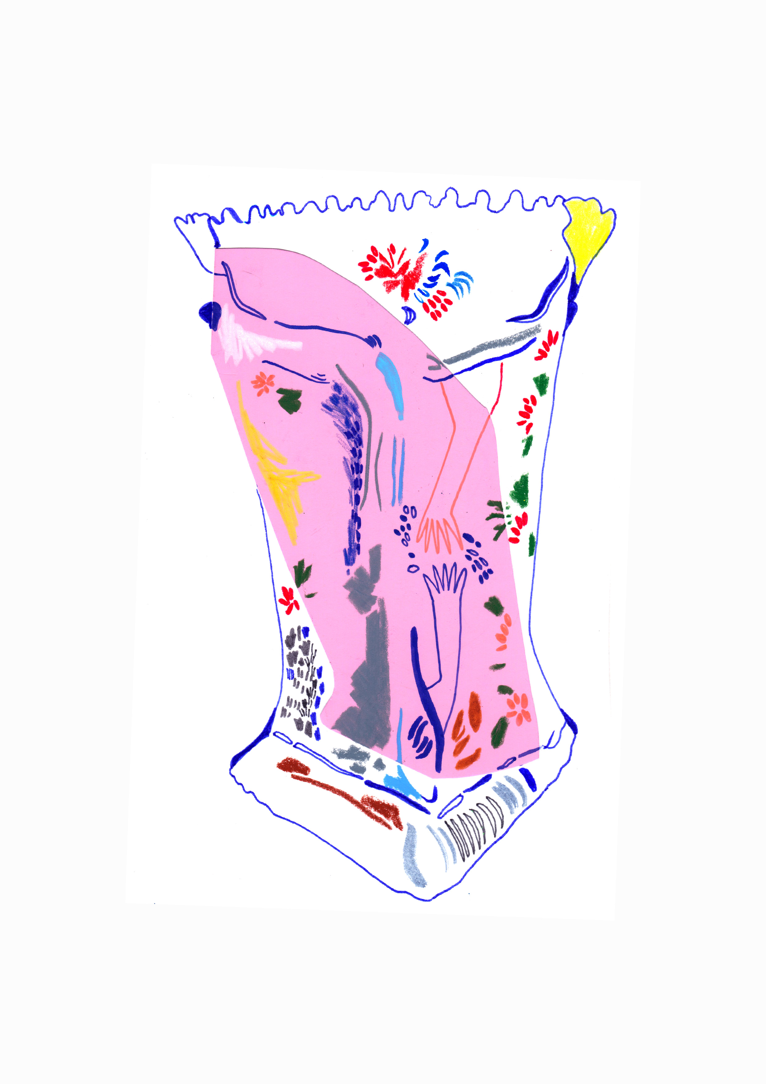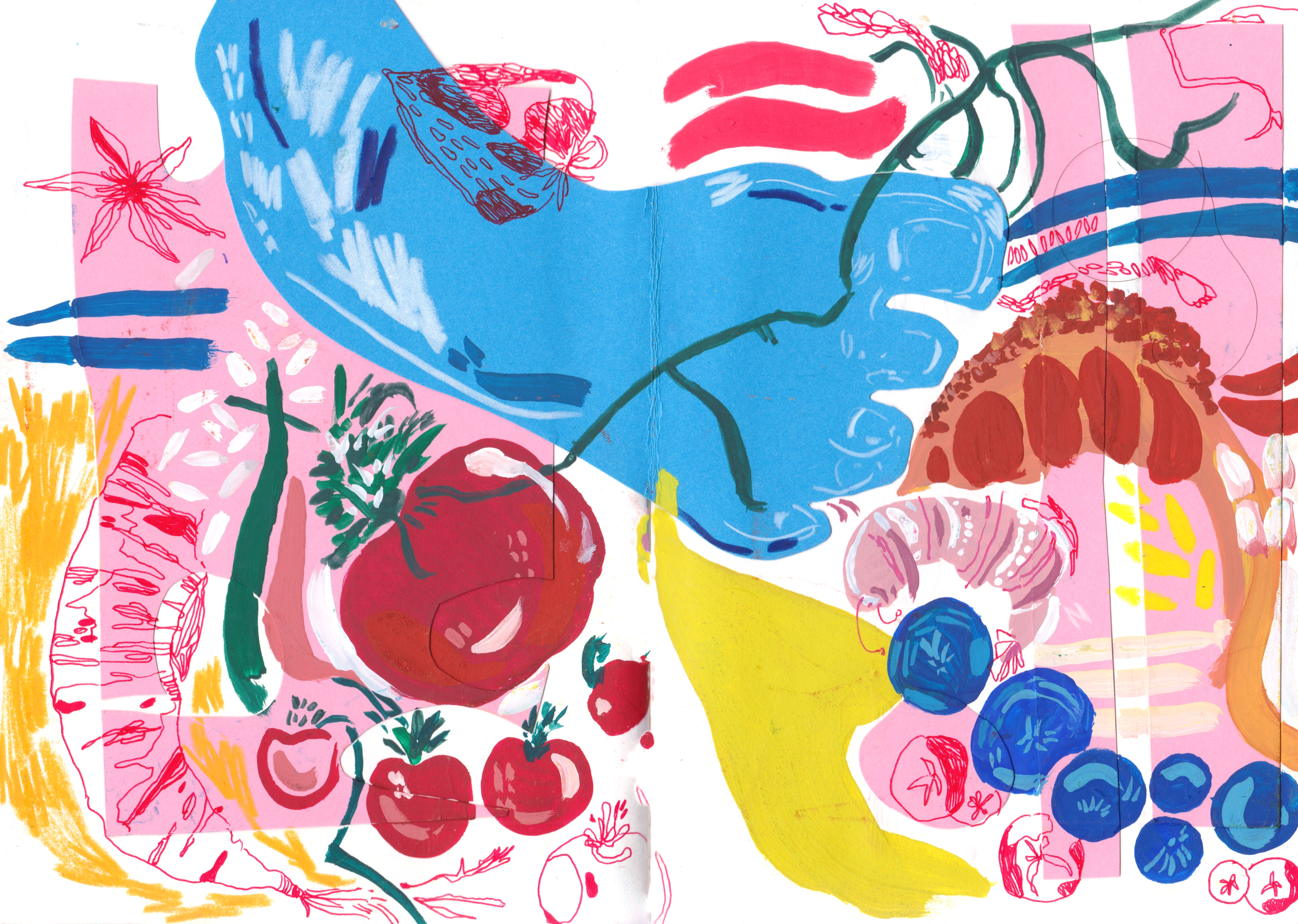 Ella Willson-Smith is a finalist Illustration student at the University of Brighton. Originally from London, her projects are largely concerned with the relationships between people, objects and place. Ella likes playing with shape and colour in her work, and though she frequently draws from real-life, she deliberately subverts like-for-like emulation. She often breaks down objects into their elemental nature, calling upon the characteristics of collage and decoupage.
