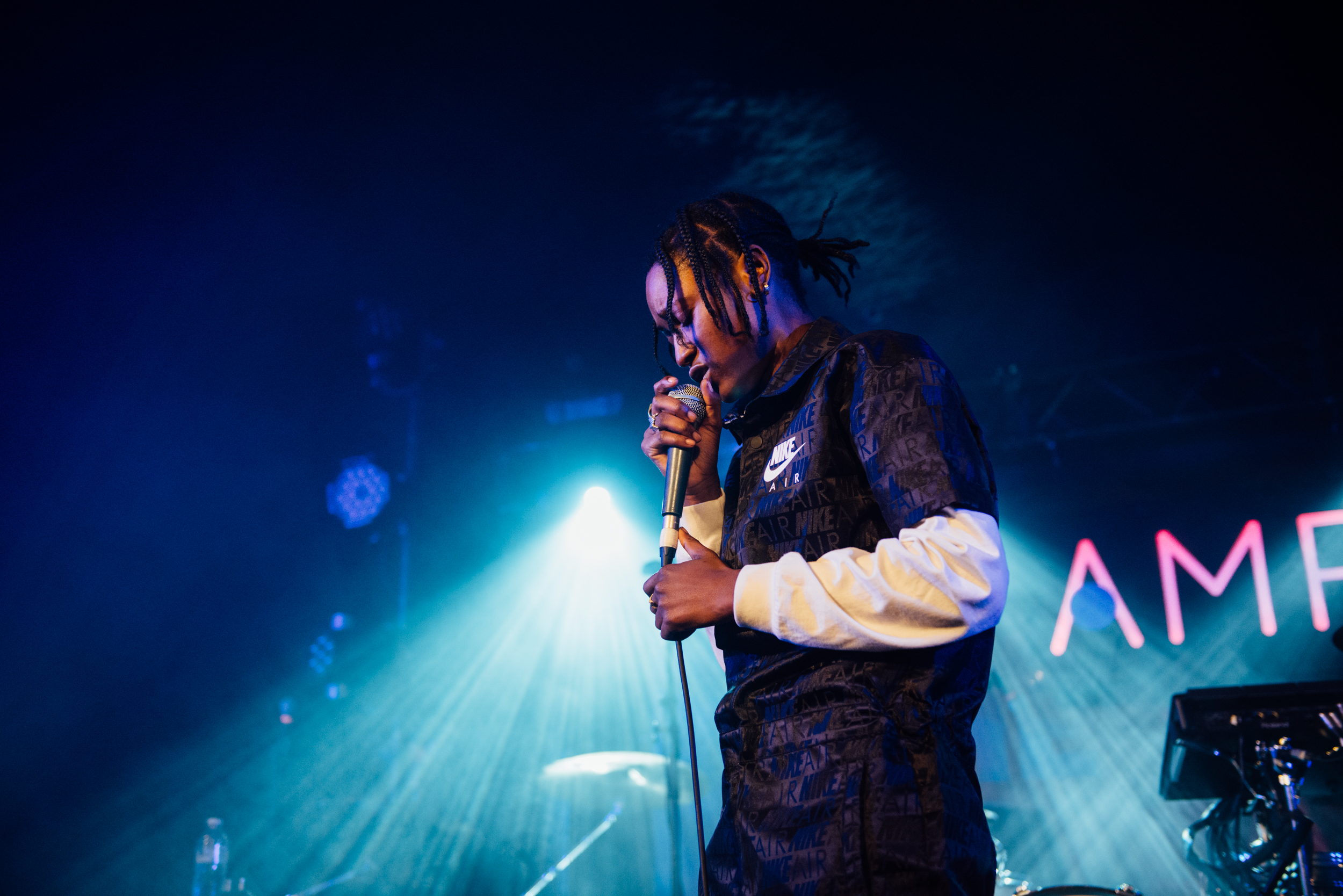 Her rhythmic and lexical control is impressive above raw beats, where opener ‘Boss’ is electrifying, with Simz rapping through a megaphone. The show as a whole is all the better for having a live drummer, giving even more impetus as she hurtles through each buzzing track.