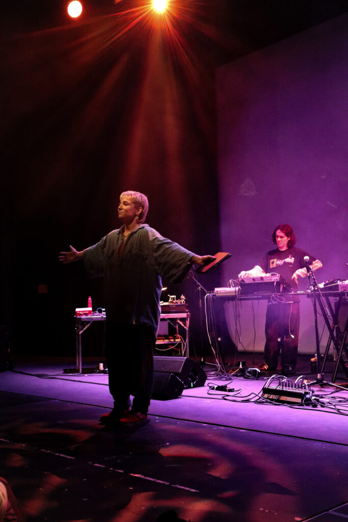 The evening included a performance by Robinson’s Village, which is the project of James Burn who uses tape loops and modular synths to create ambient sound. Furrowed (Dylan Beattie) was joined by Cederick Knox to improvise with a live-cut record and a grand piano, mixing the experimental with more classical instrumentation. The final act was Noise Peddler- a duo composed of Danny Bright and Lee Westwood who use no-input pedalboards. There were also more interactive elements, including Emma Bean’s ‘Concepts of a Plan’, and in the café bar, the audience was encouraged to play with some of the gear featured in the show.