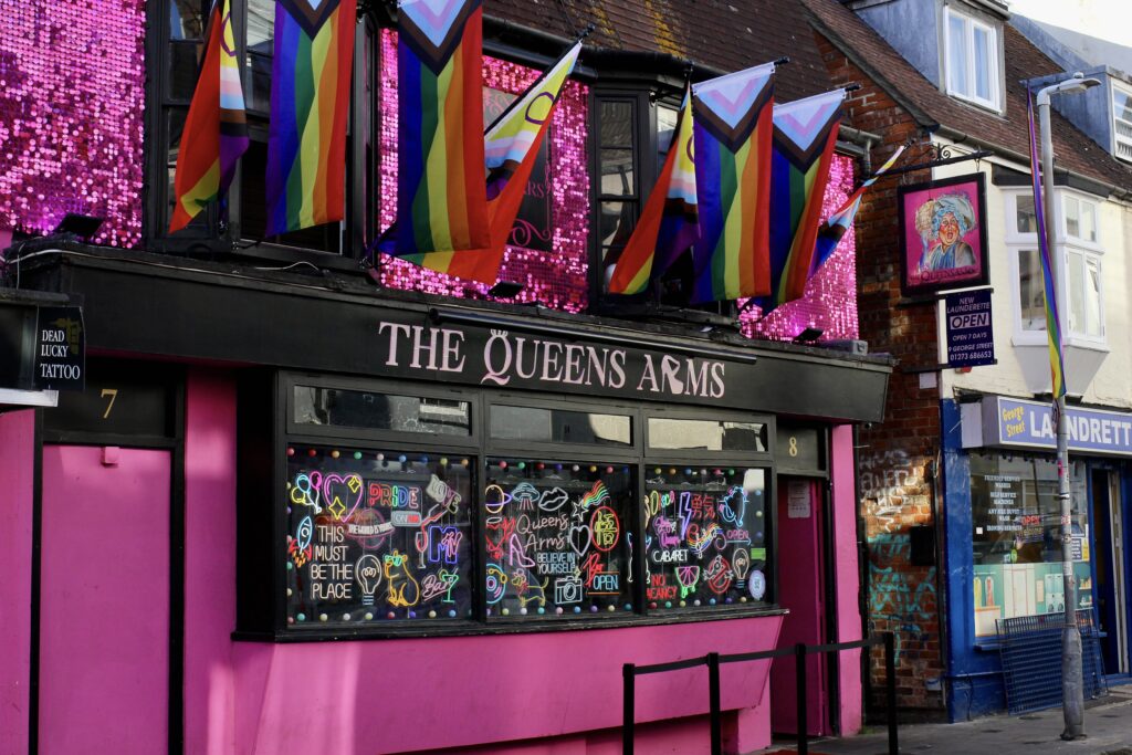 If you do end up exploring Kemptown, be sure to pick up a Revealing St James’s Street flyer! The project allows for a walking street tour of Kemptown from the locals themselves, with interviews hosted by Afie Ordinary and other drag icons such as Alex Fincher and Billie Gold. The project tells stories of the people and various venues that are safe spaces for many in the queer community. More information can be found on the Queer Heritage South website, a digital archive hosting a plethora of posts that tell the stories and research of local writers and community members.