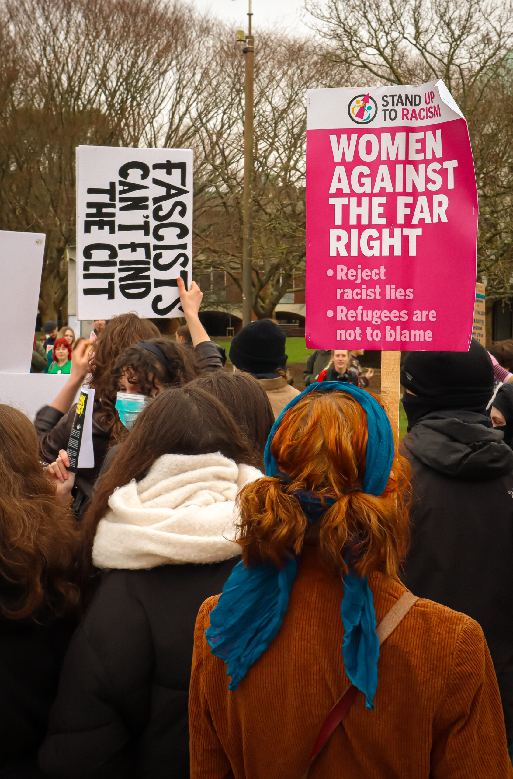 After the group moved from Library Square towards the Sports Centre, organisers again directed protesters away from the cameras whenGB News attempted to film, reportedly for a live broadcast. A similar incident occurred earlier in the demonstration, when a member of the crew set up a tripod, only for protestors positioned in front of it to stand up and leave en masse.