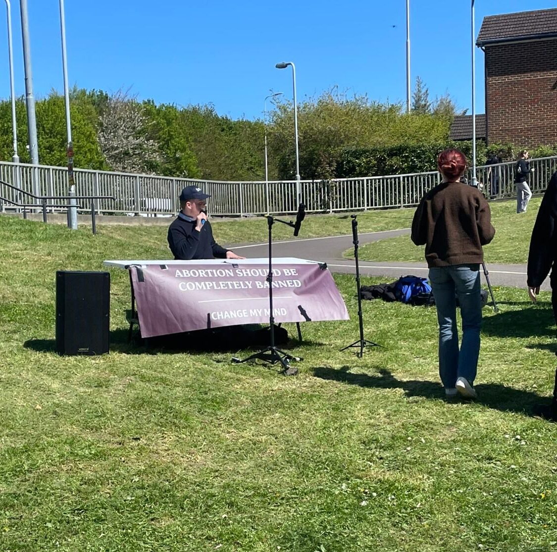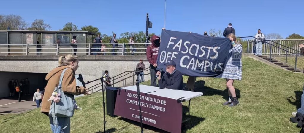 The incident took place off campus, near the University, where a table bearing the sign “abortion should be completely banned, change my mind” had been set up by individuals, including Gregory Moffitt, a 17-year-old activist associated with Turning Point UK and Vox Populi.